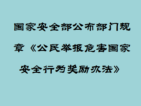 国家安全部公布部门规章《公民举报危害国家安全行为奖励办法》